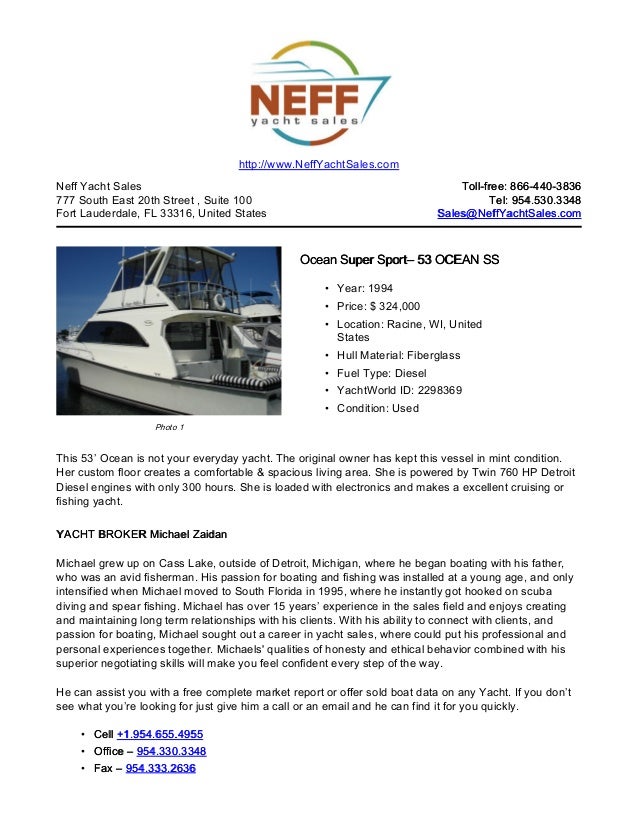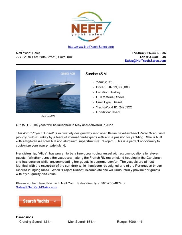 BABY — SEA RAY Our experienced yacht broker, Andrey Shestakov, will help you choose and buy a yacht that best suits your needs Baby — SEA RAY from Disclaimer Neff Yacht Sales offers the details of this vessel in good faith but cannot guarantee ... Fetch Doc